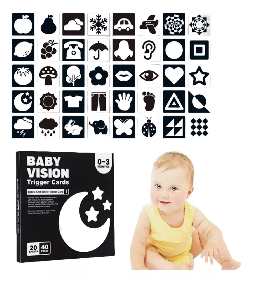 Tarjetas Estimulación Visual Sensorial Montessori 0-3 Meses